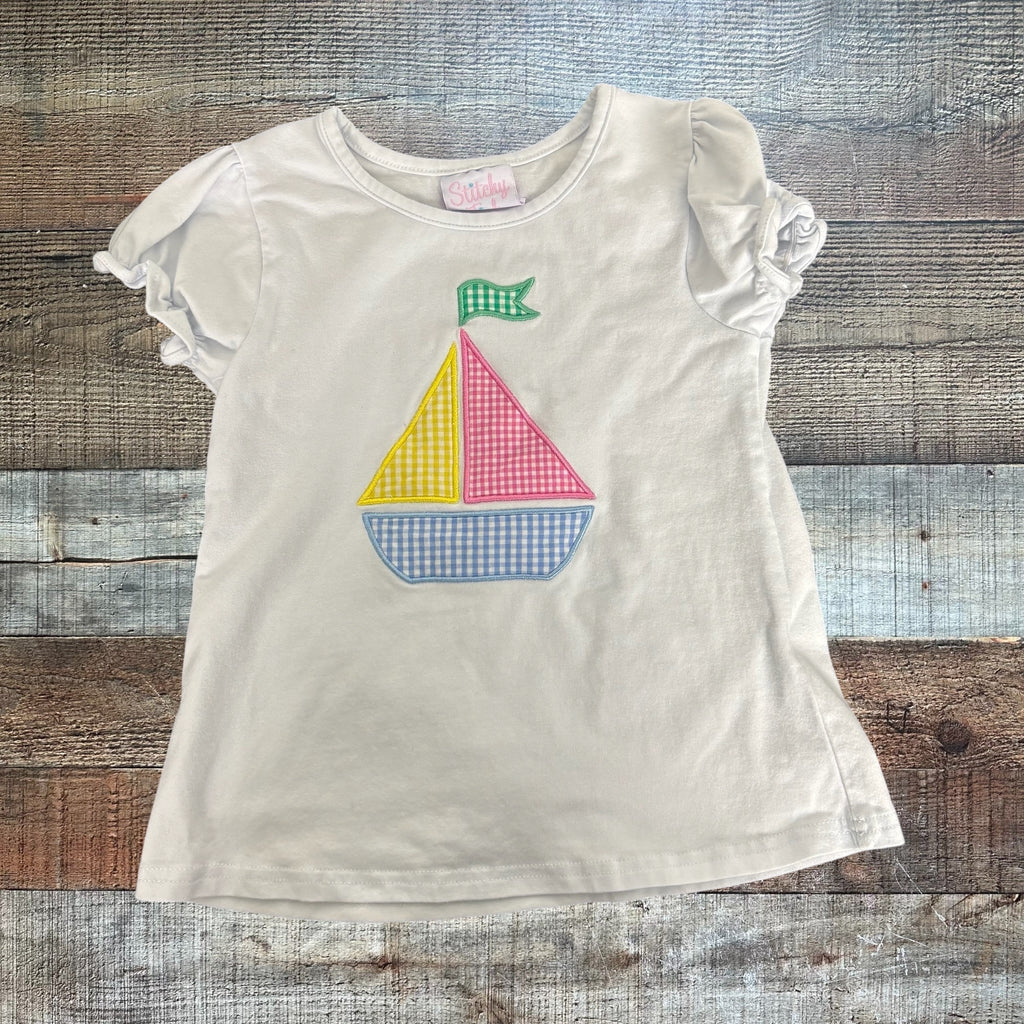 Stitchy Fish White Embroidered Sailboat Top- Size 4T