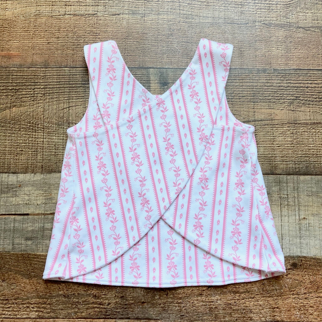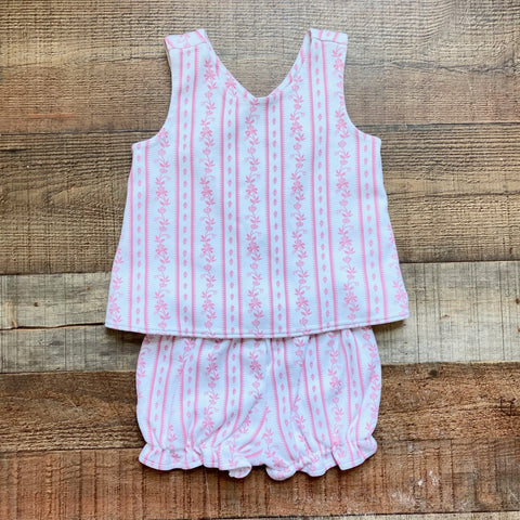 The Beaufort Bonnet Company White Pink Floral Design Criss Cross Back Top Shorts Set- Size 3T