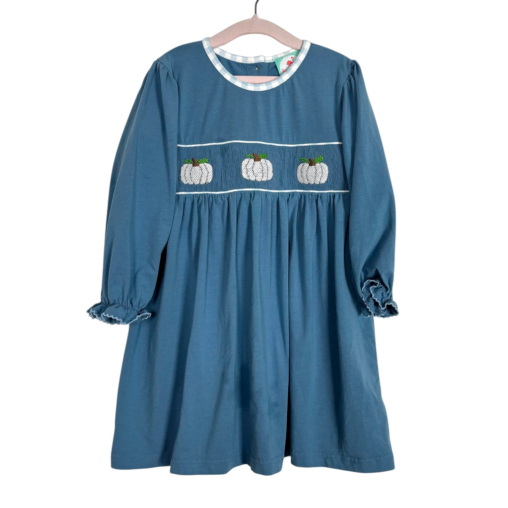 The Smocked Flamingo Blue/White Pumpkin Dress - Size 4T (See Notes)