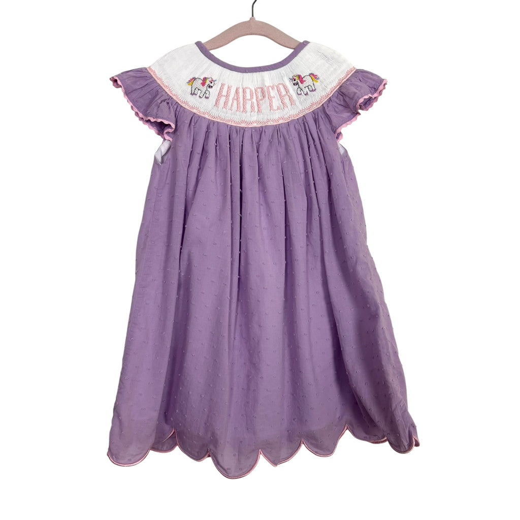 The Smocked Flamingo Purple Harper Unicorn Dress - Size 4T