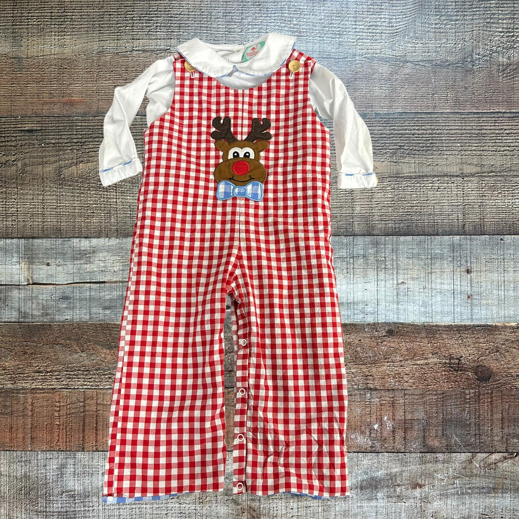 The Smocked Flamingo Red Gingham Reindeer Outfit - Size 2T