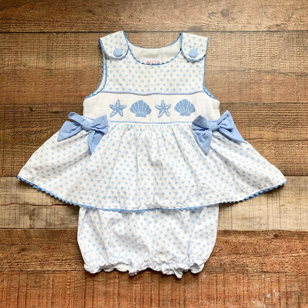 The Smocking Place Blue and White Polka Dot Smocked Shell Short Set- Size 3T (see notes)