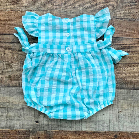 Three Sisters Blue and White Check Side Bow Romper- Size 3M