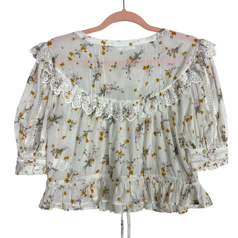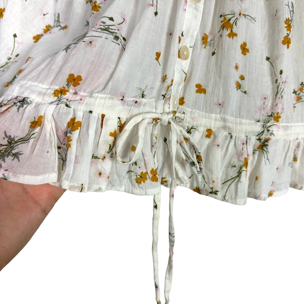 Tularosa White Floral Eyelet Ruffle Drawstring Waist Top- Size S