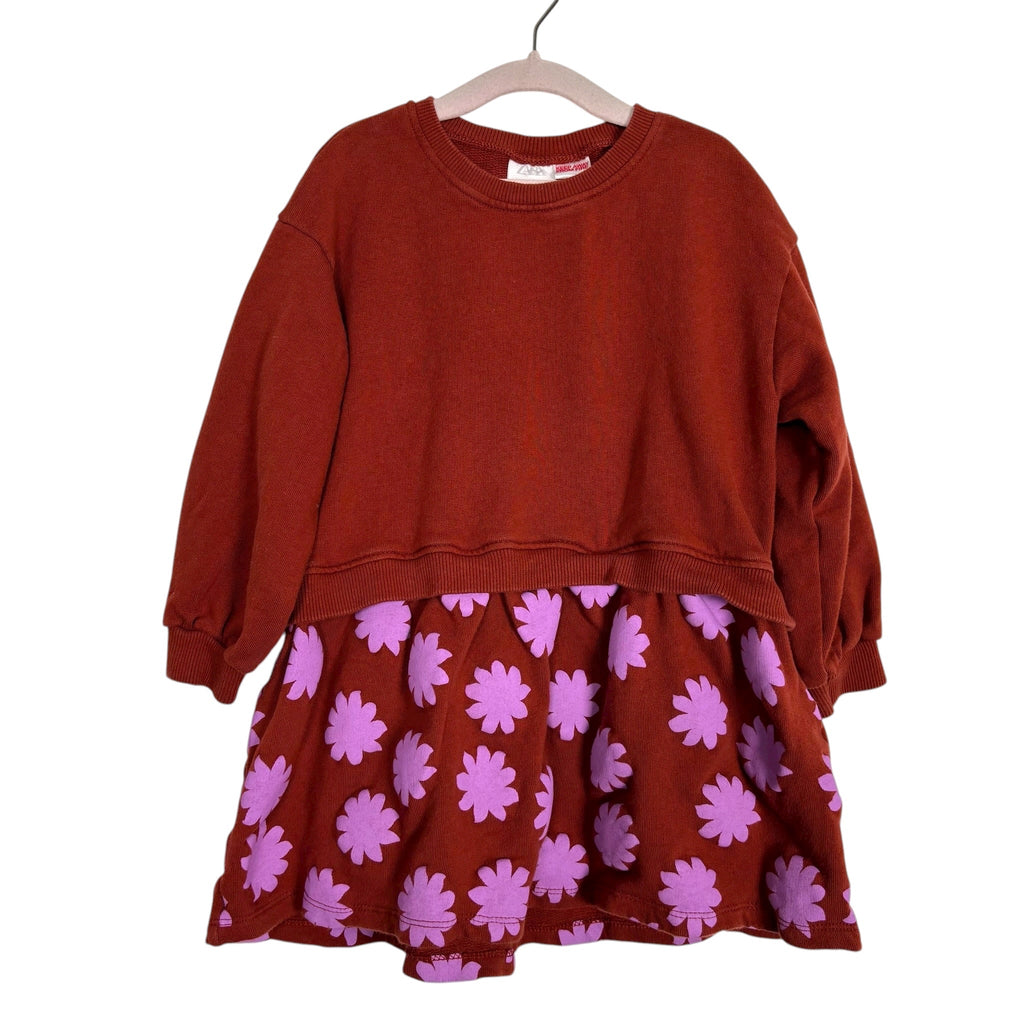 Zara Brick Flower Print Dress - Size 2-3 Years