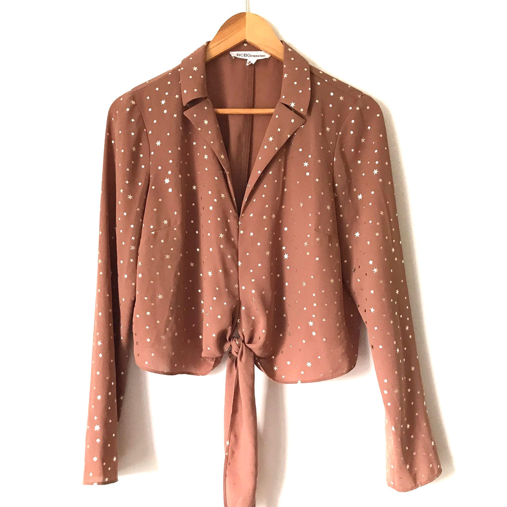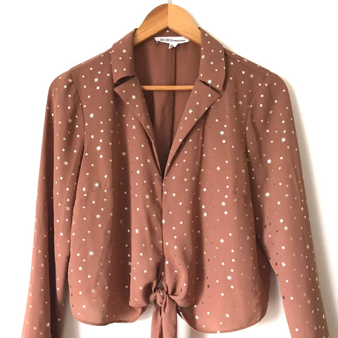 BCBGeneration Metallic Gold Star Print Tie Front Blouse- Size S