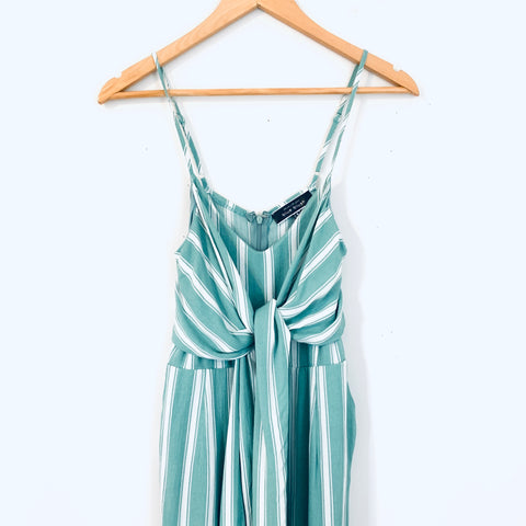 Blue Blush Green/White Striped Tie Front Cropped Jumpsuit with Shorts Lining- Size S