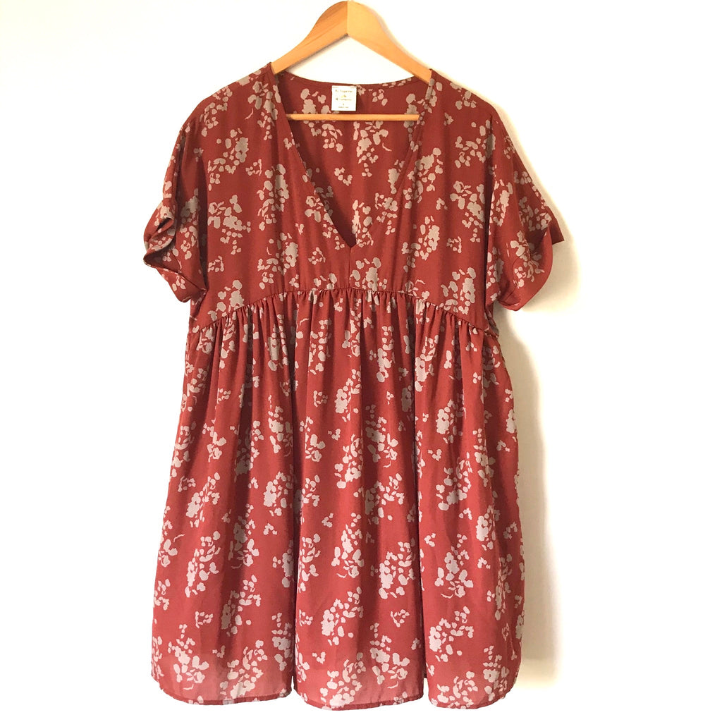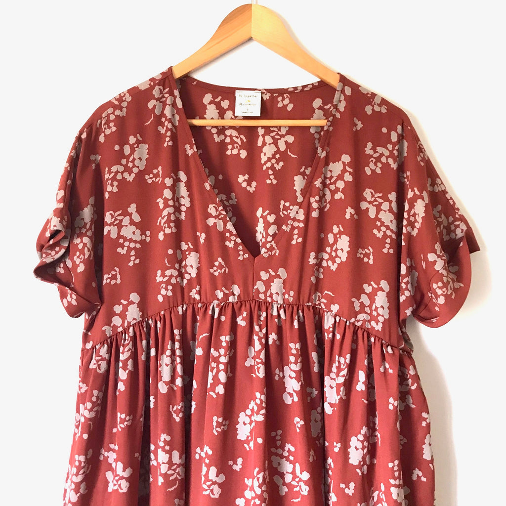 By Together V Neck Orange/Brick Printed Dress- Size S