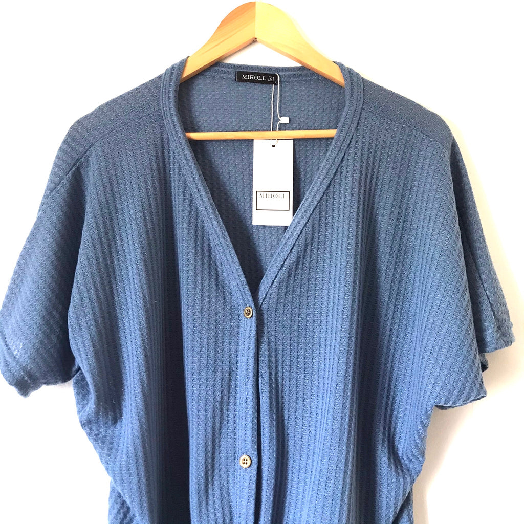 Miholl Blue Waffle Knit Tie Front Short Sleeve Top NWT- Size S