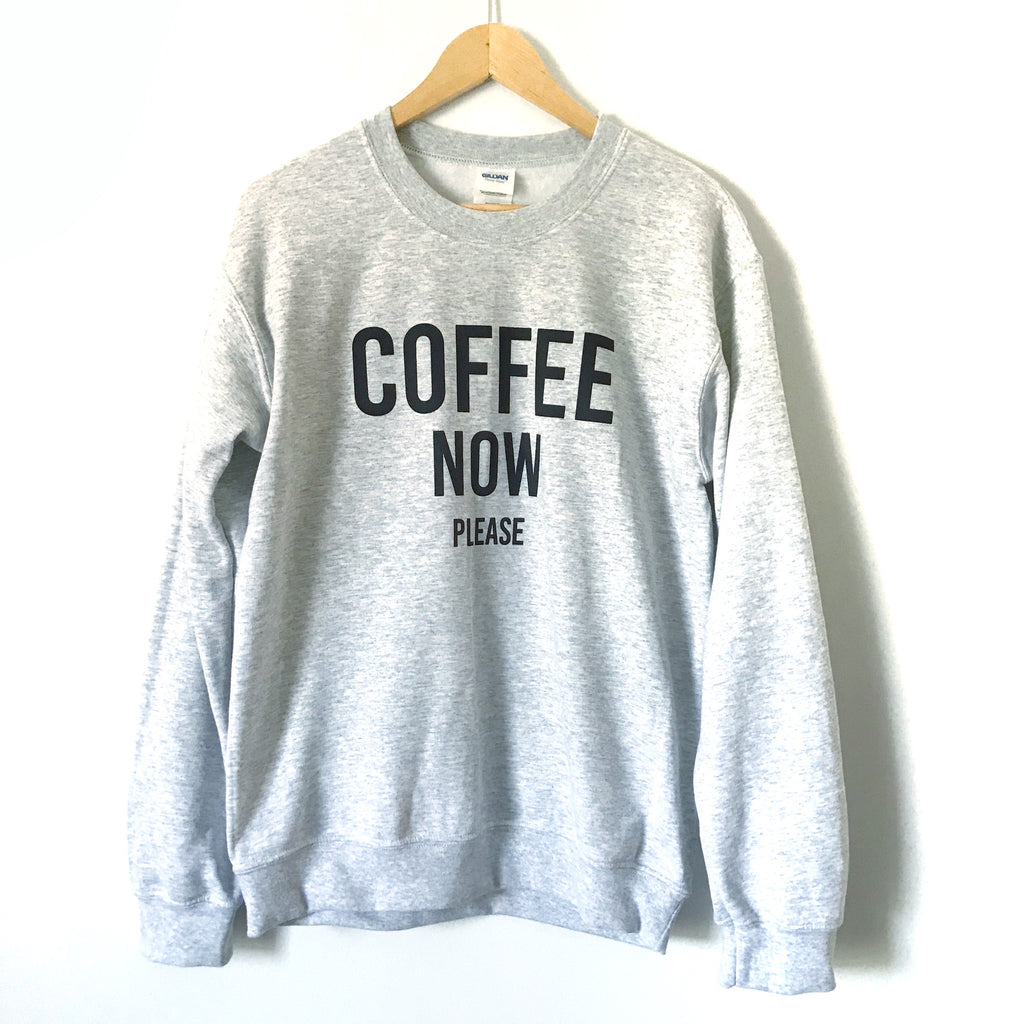 No Brand Grey “Coffee Now Please” Graphic Pullover Sweatshirt- Size S