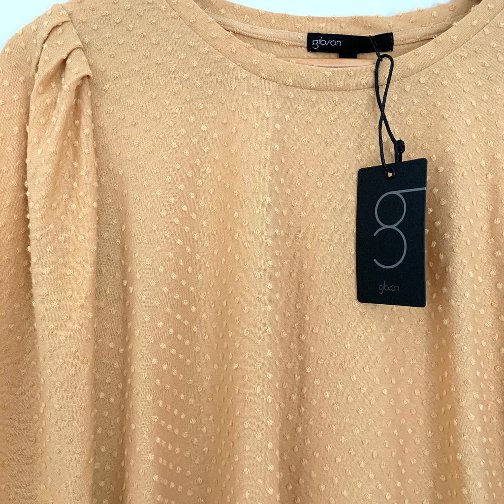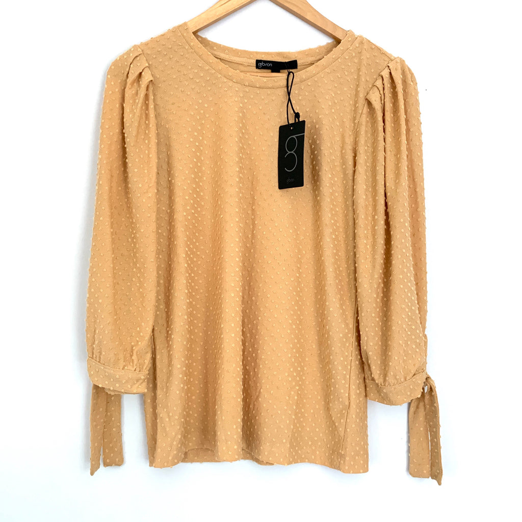 Gibson Pale Yellow Dot 3/4 Sleeve Blouse NWT- Size XS