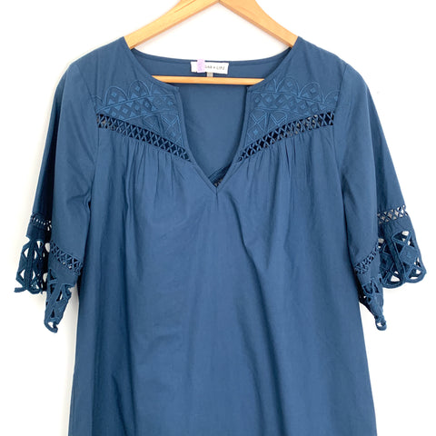 Sugar + Lips Navy Shift Dress with Eyelet and Embroidered Detail- Size ~S