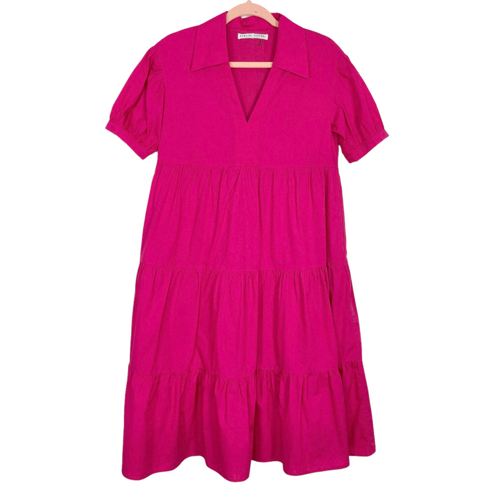 English Factory Hot Pink Collared Tiered Midi Dress- Size ~S (see notes)