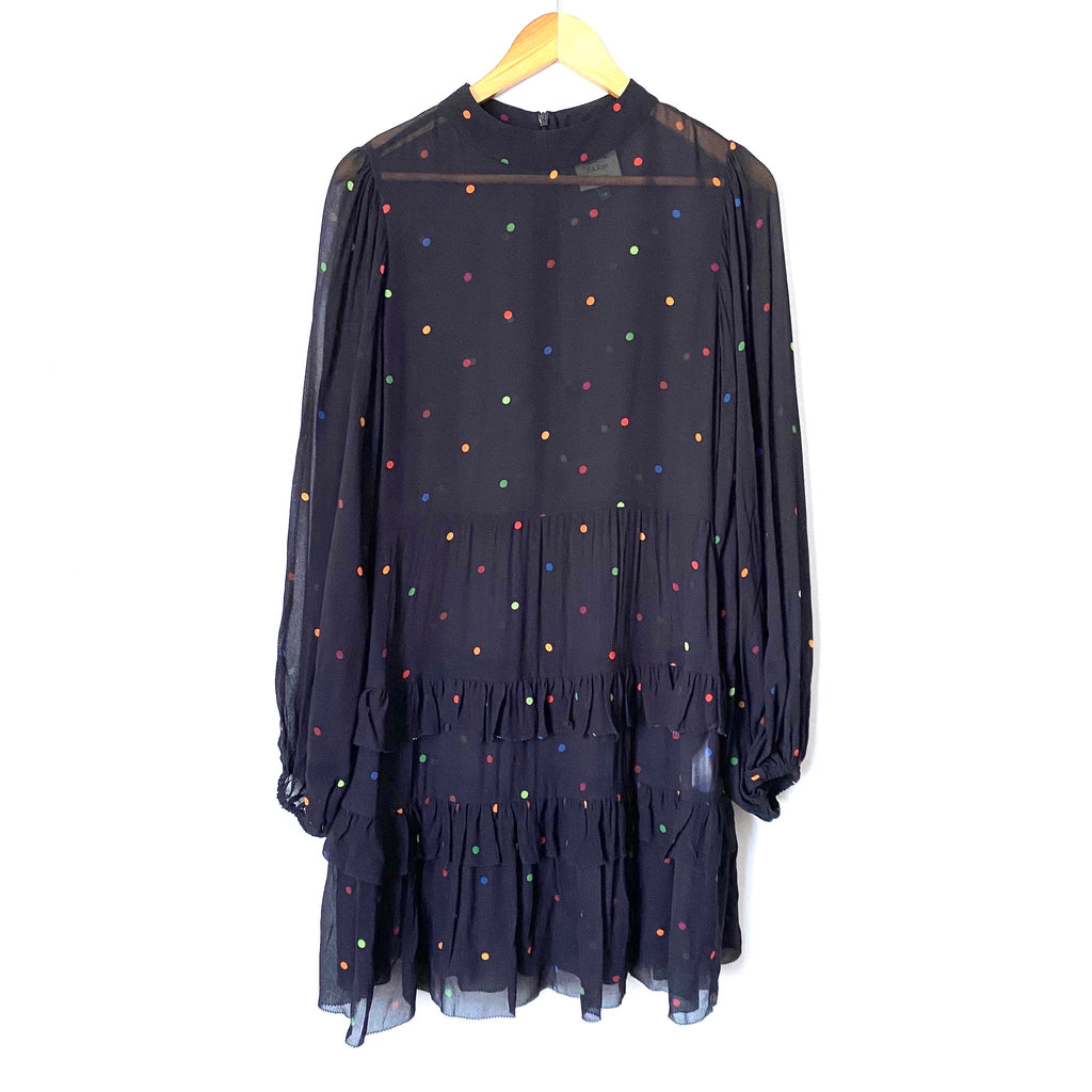 Farm Rio Black Polka Dot Sheer (no slip) Dress- Size XS