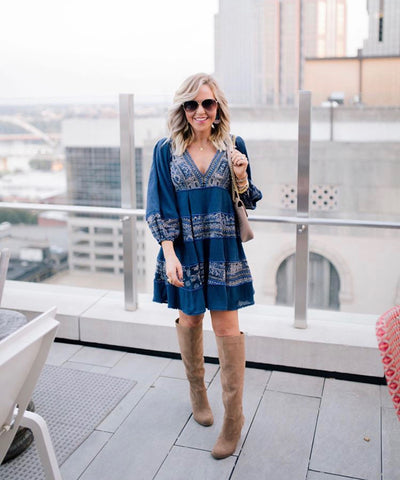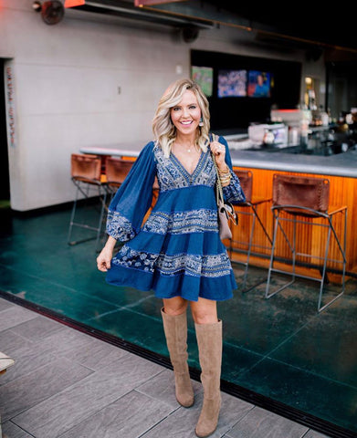 Free People “Indigo Combo” V Neck Dress NWT- Size XS