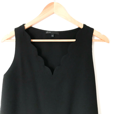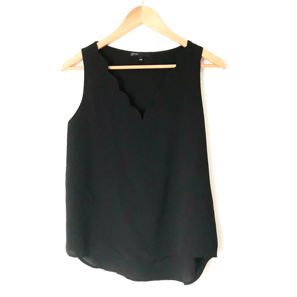 Gibson Black Scalloped V Neck Blouse- Size XS Petite