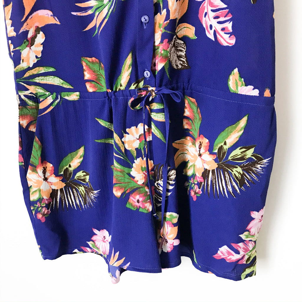 Gibson Blue Floral Button Up Tie Waist Romper- Size XS