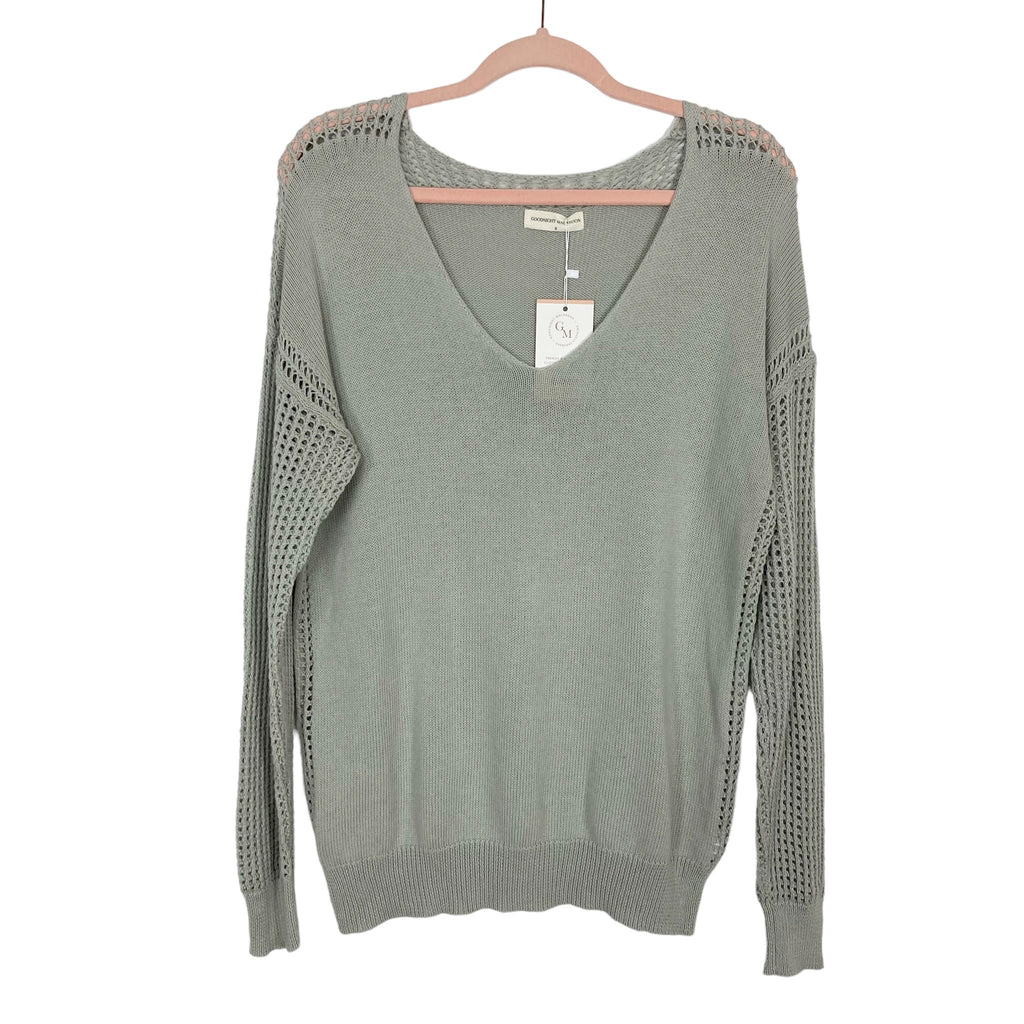 Goodnight Macaroon Gray with Open Knit Sleeves Sweater NWT- Size S
