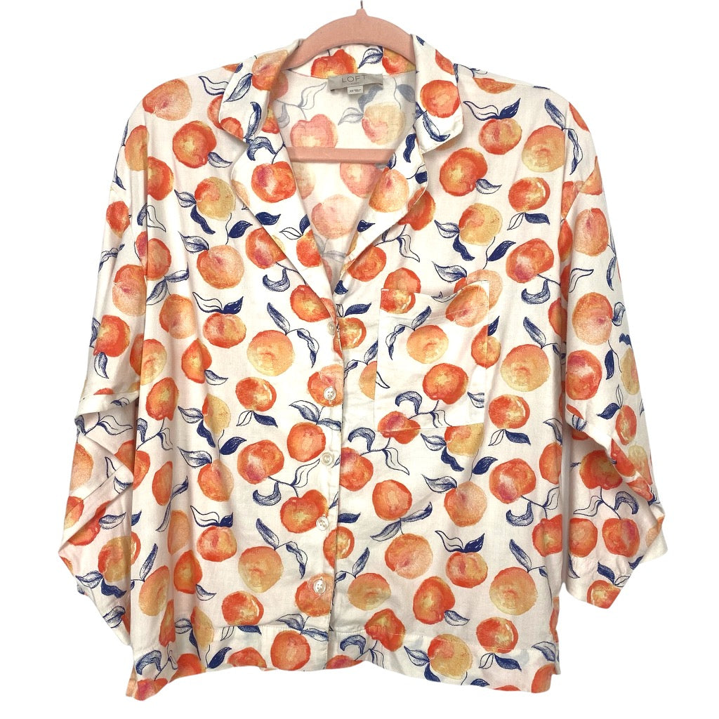 LOFT Sleep Orange Print Button Up Top- Size XS