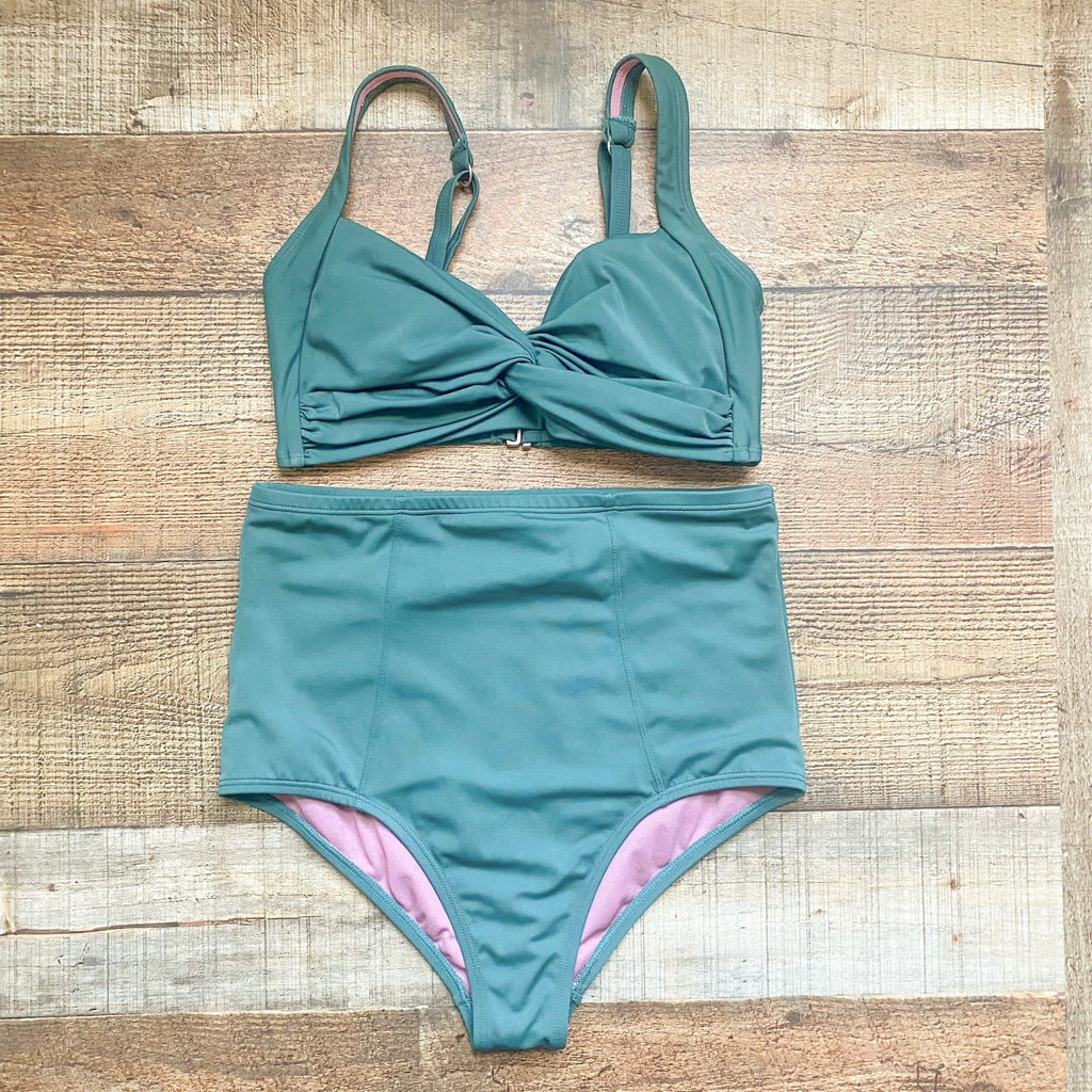 Marina West Green Front Twist Padded Bikini Top and High Waisted Bottoms- Size S (sold as set)