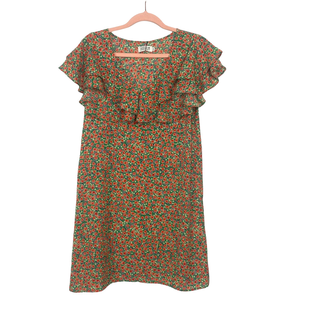 Molly Bracken Green and Orange/Red Floral Ruffle Dress NWT- Size XS