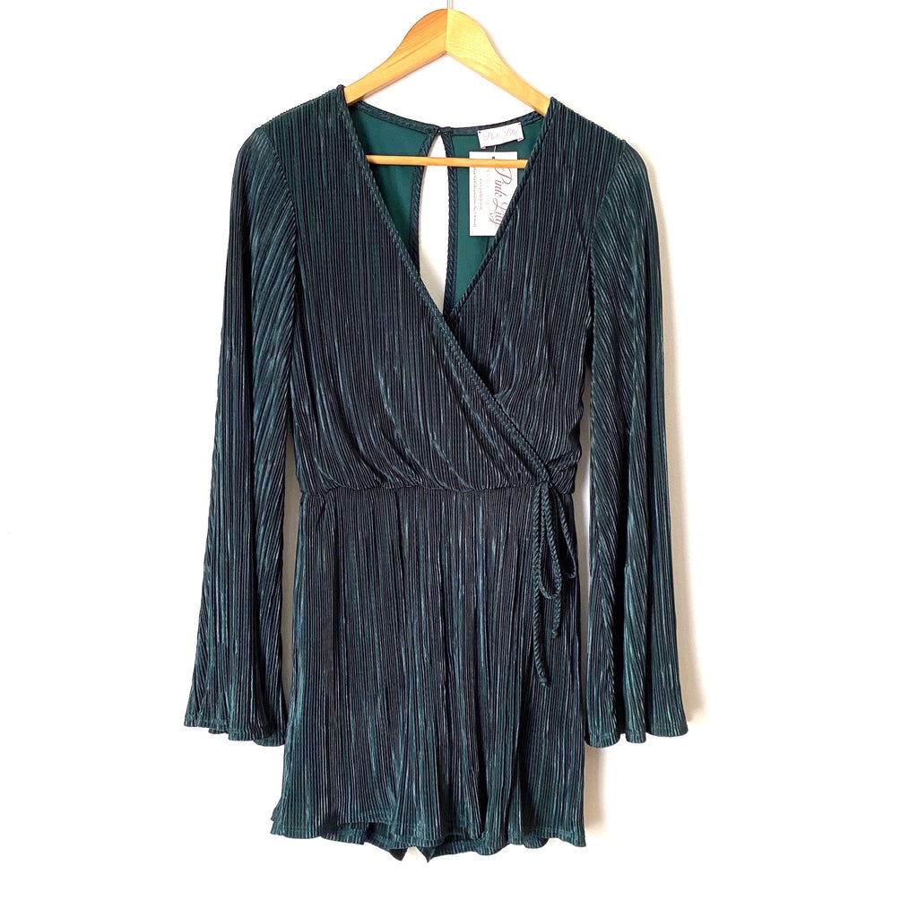 Pink Lily Forest Green Faux Wrap Romper NWT- Size S