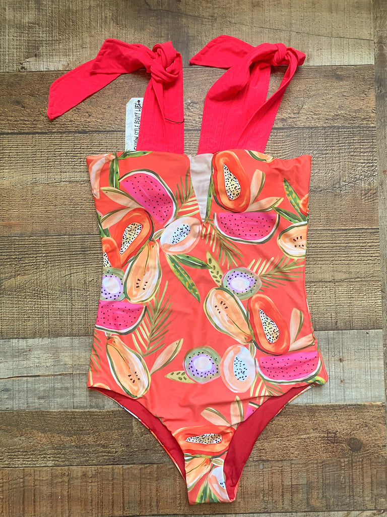 Sporlike Fruit Print Padded Tie Strap One Piece NWT- Size M (sold out online)