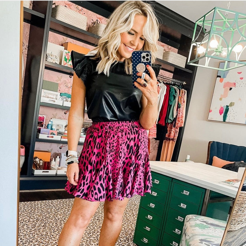 TCEC Black/Pink Animal Print Smocked Waist Shorts- Size S