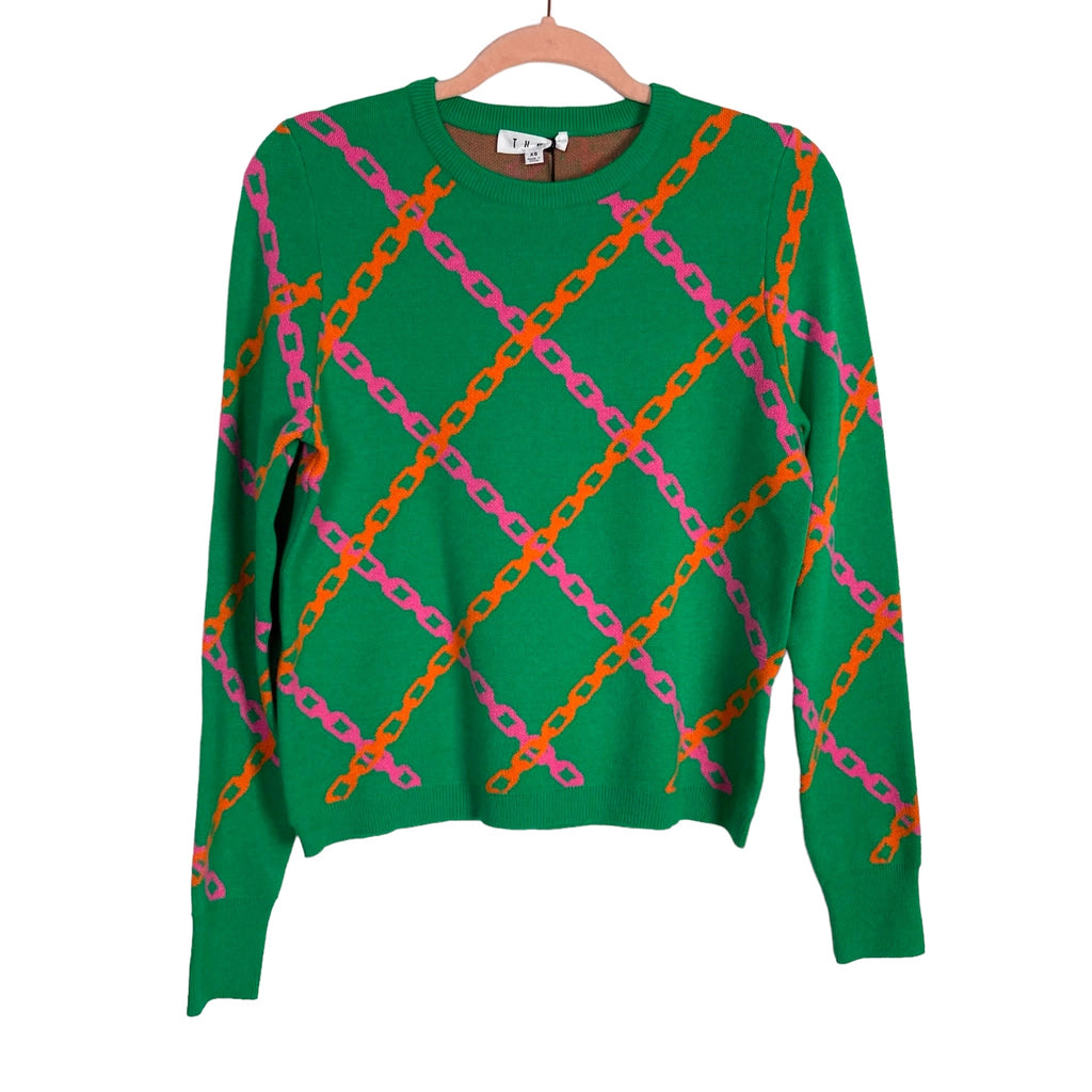 THML Green with Orange and Pink Chain Printed Sweater NWT- Size XS (sold out online)