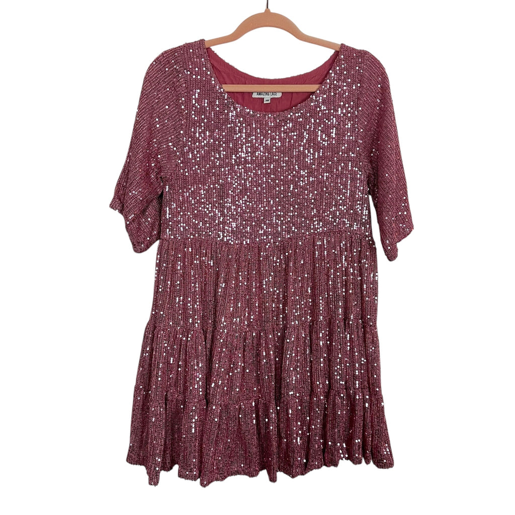 Amazing Lace Pink Sequin Babydoll Dress- Size XS