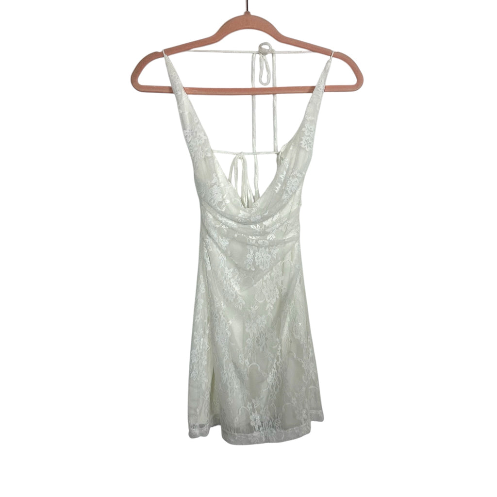 Showpo. White Lace Halter Tie Mini Dress- Size 4