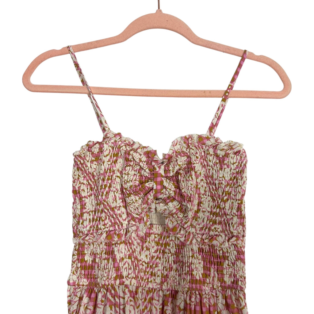 Vici Pink Printed Front Cutout Smocked Dress- Size S