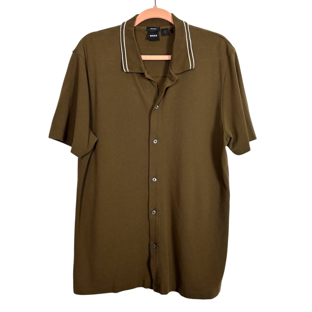 Hugo BOSS Mercerized Brown Button Front Collared Top- Size XL