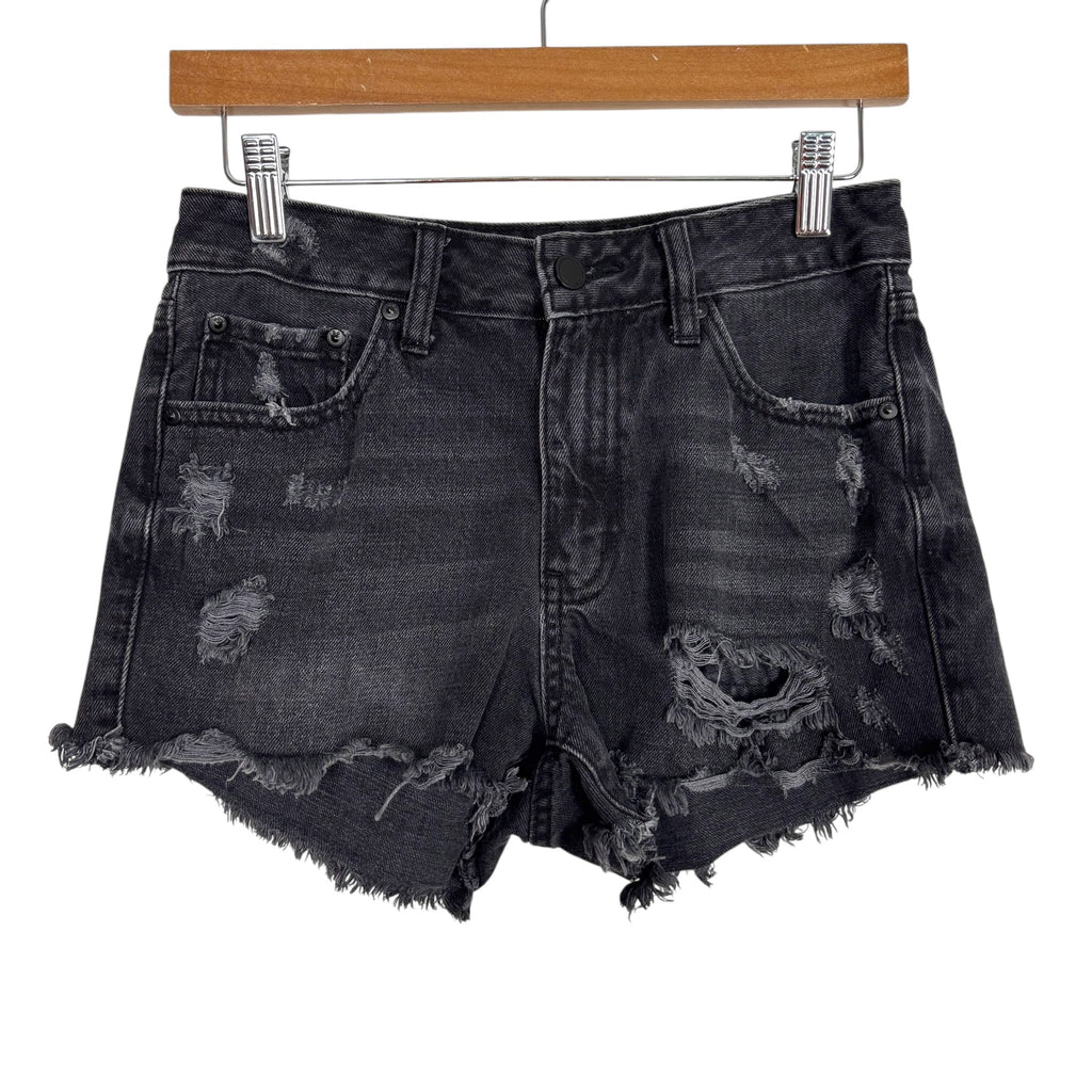 Just Black Denim Black Distressed Raw Hem Jean Shorts- Size XS