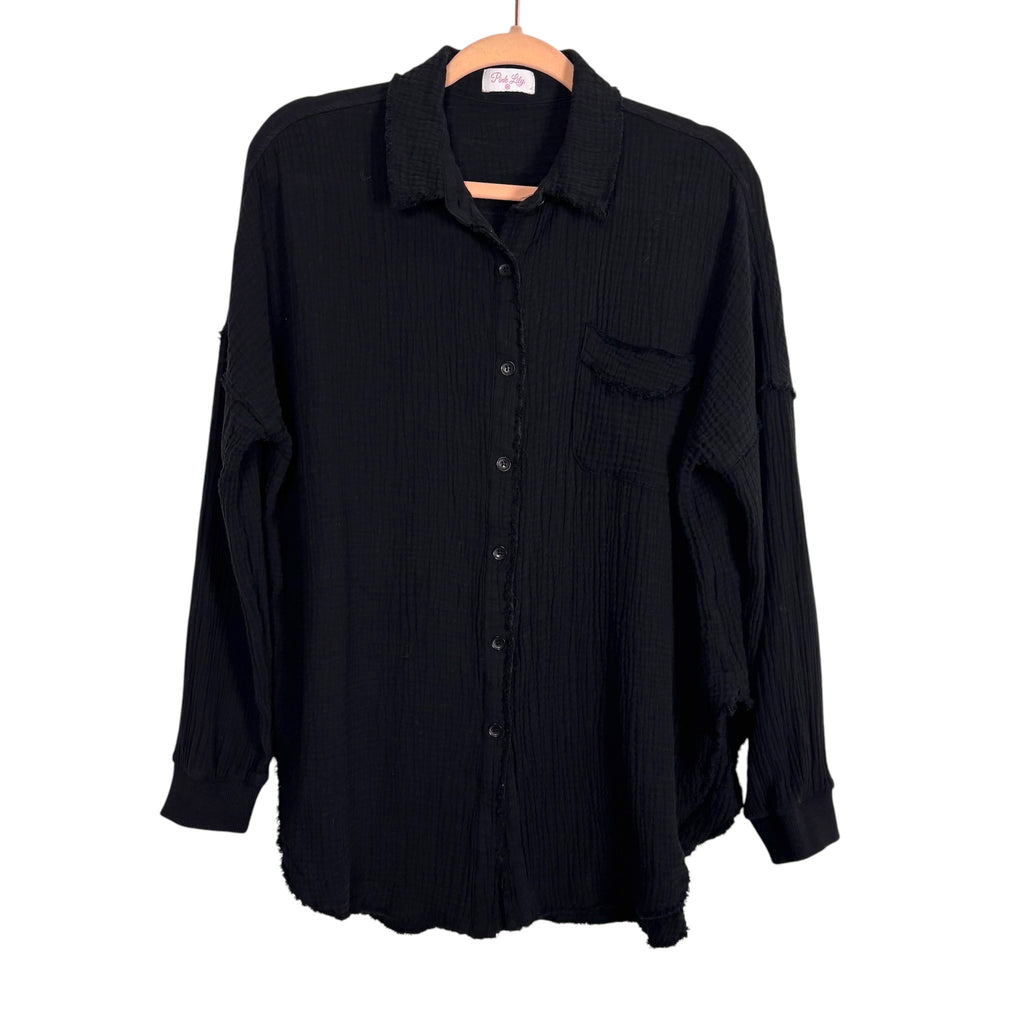 Pink Lily Black Gauze Button Up Top- Size M