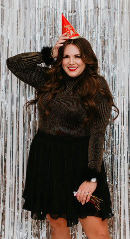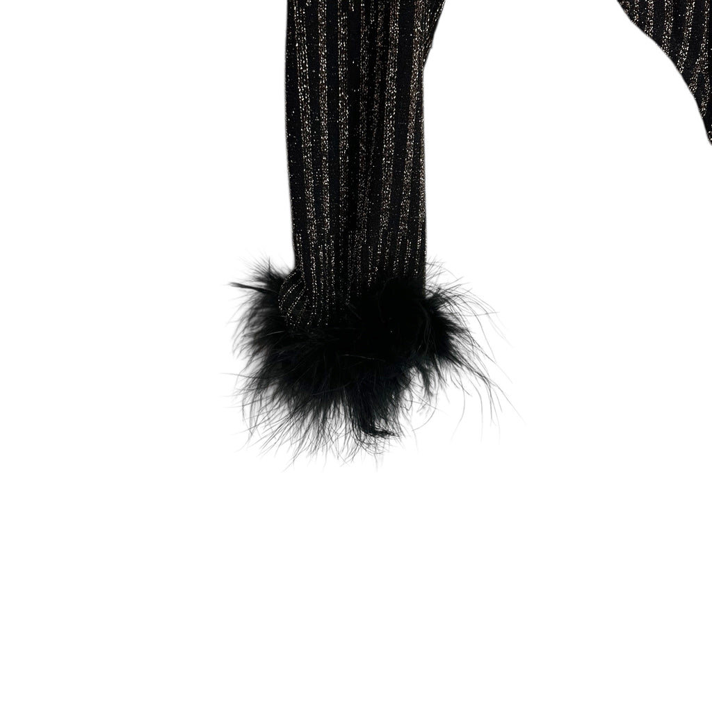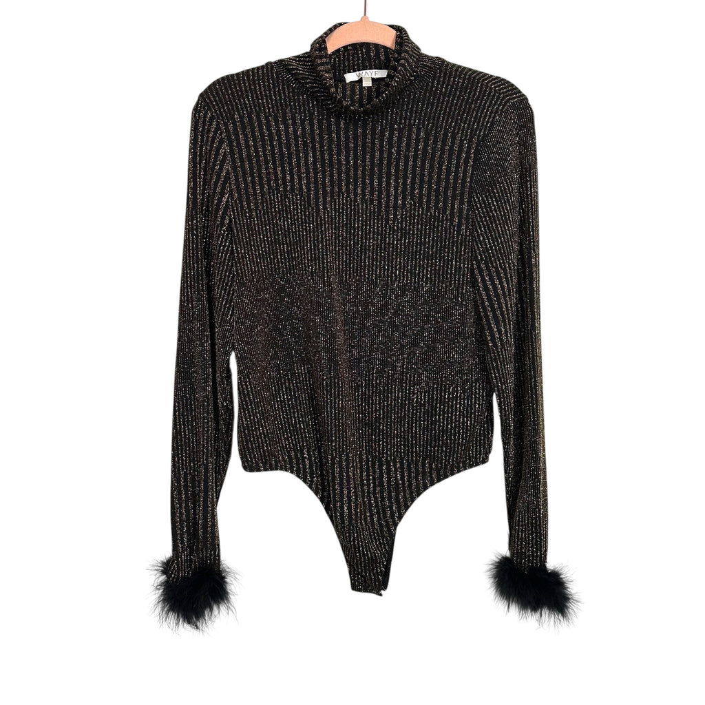 WAYF Black/Gold Metallic Turtleneck Thong Bodysuit - Size XL