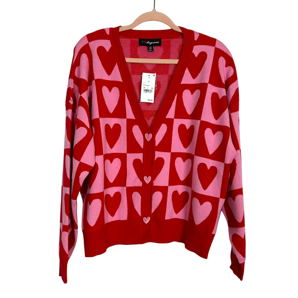 33 Degrees Red/Pink Heart Cardigan NWT - Size XL