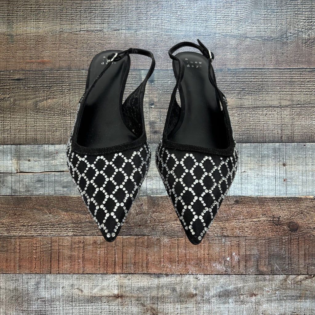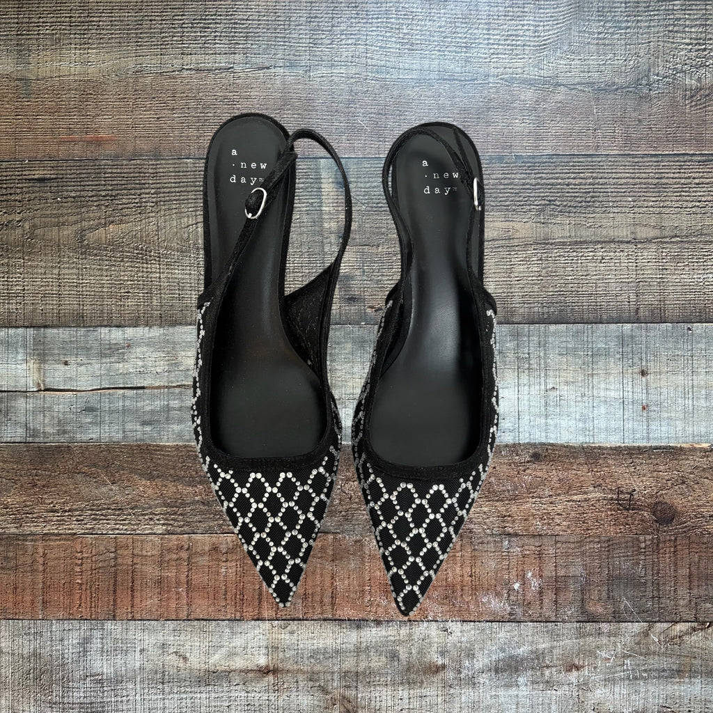 A New Day Black Mesh Rhinestone Low Pump- Size 8.5