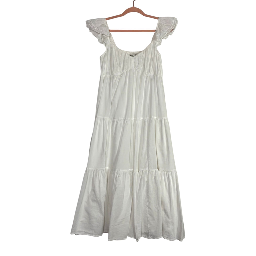 Abercrombie & Fitch White Ruffle Flutter Sleeve Maxi Dress - Size L (sold out online)