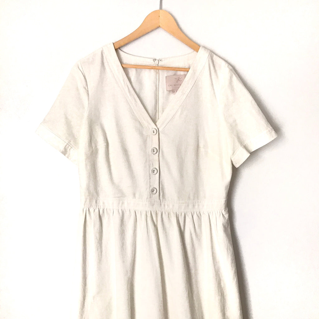 Gal Meets Glam White Angela Linen Button Detail Ruffle Hem Dress- Size 14