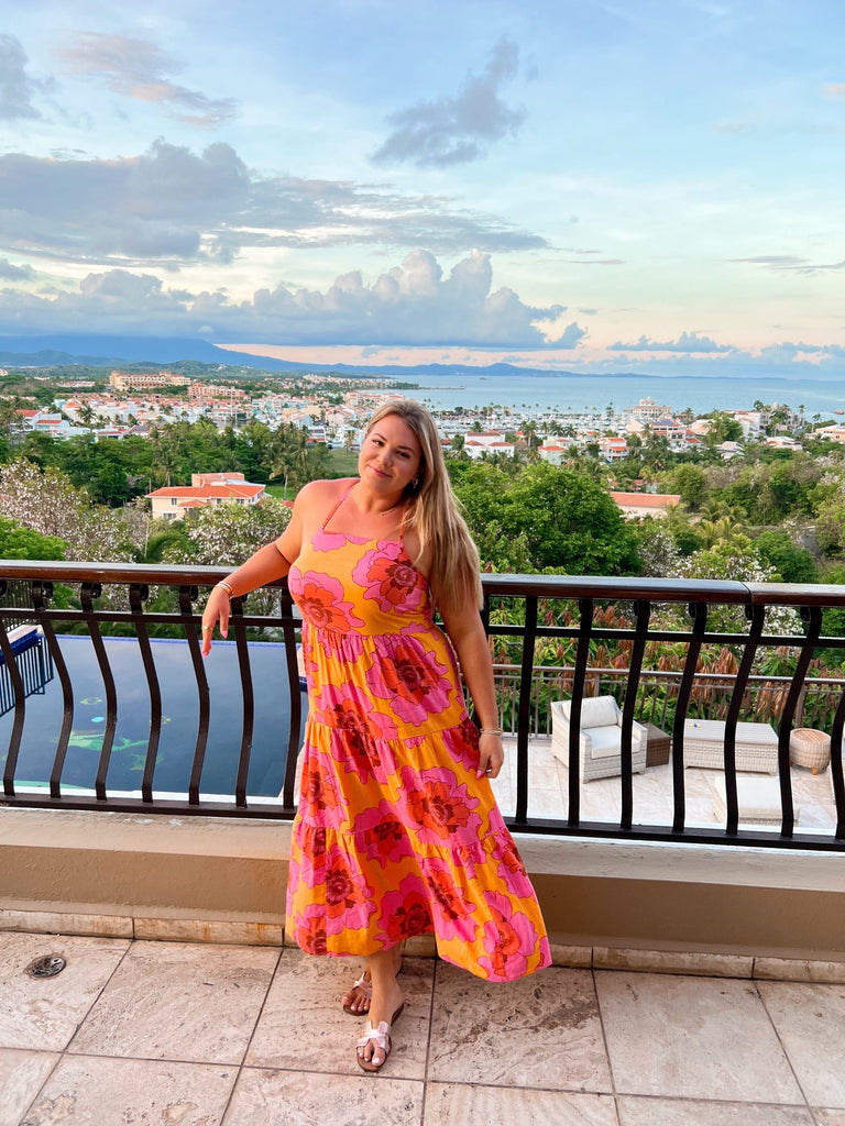 Gap Pink/Orange Floral Print Maxi Dress - Size L
