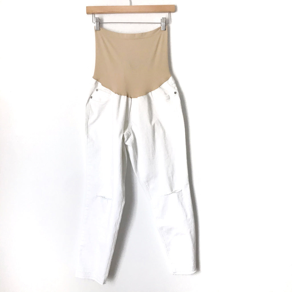 Indigo Blue White Distressed Maternity Jeans- Size XL (Inseam 27 1/2”)