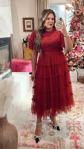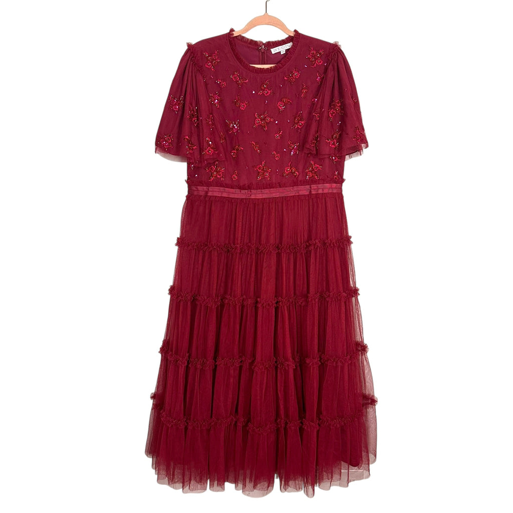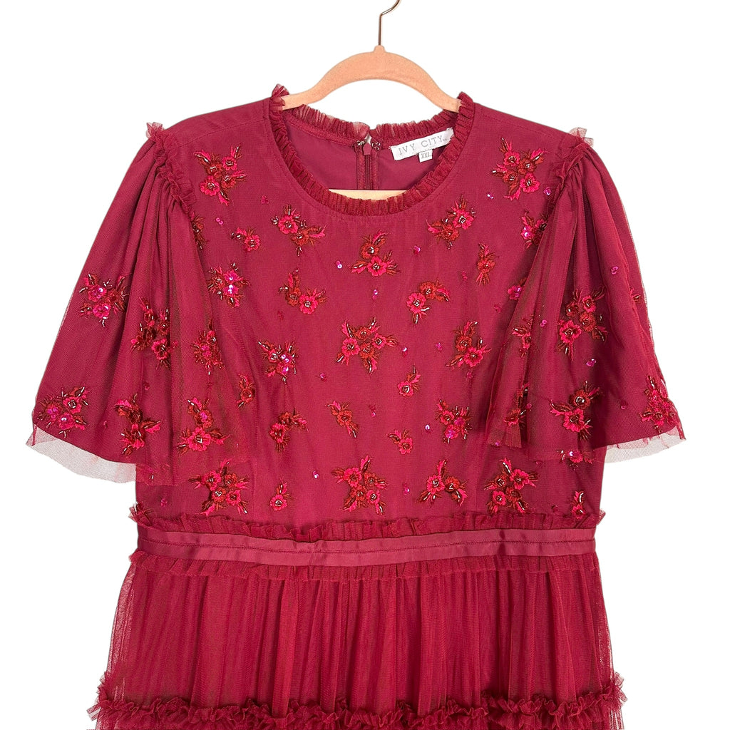 Ivy City Co Red Anastasia Tiered Beaded Embellished Tulle Dress - Size XXL (Sold Out Online!)