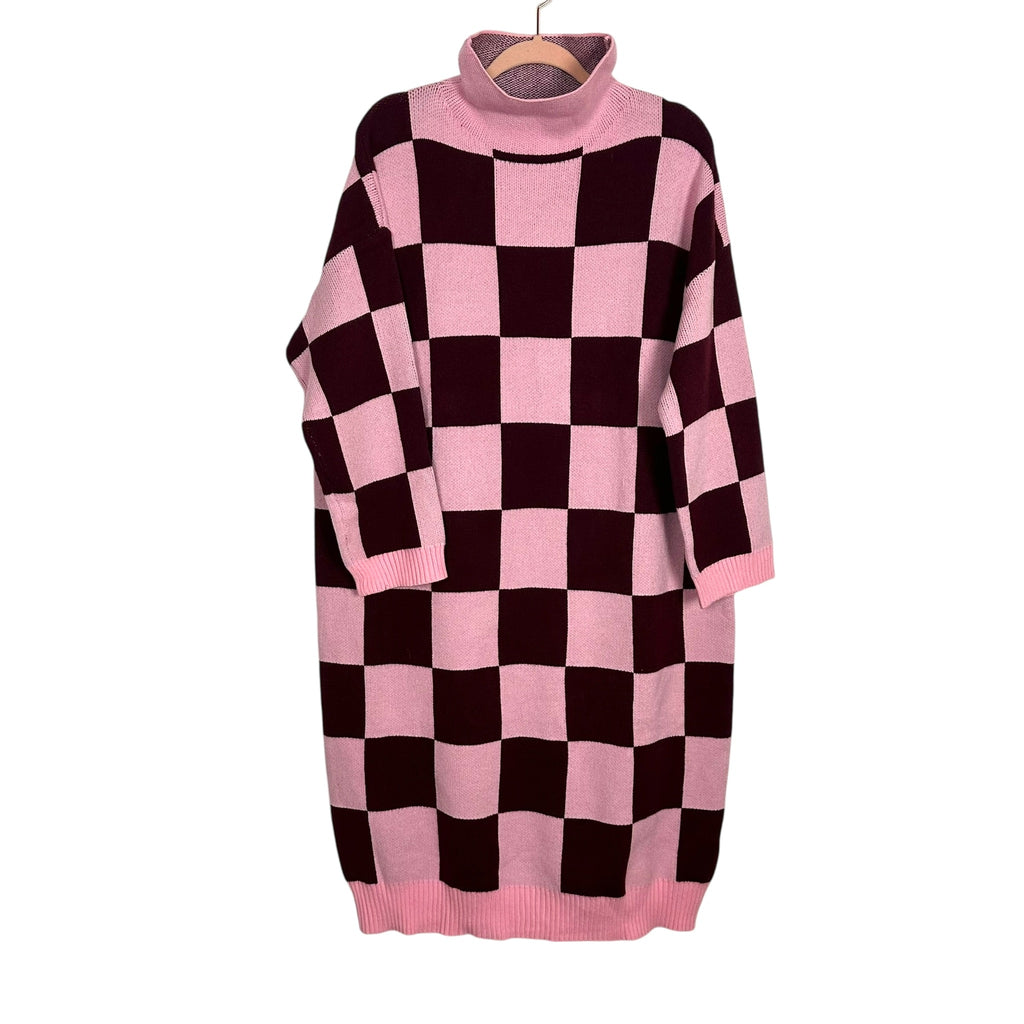 Pink Desert Pink/Maroon Checker Print Turtleneck Sweater Dress NWT - Size XL