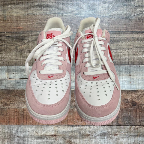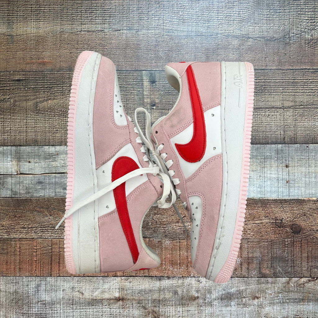 Pre-Owned Nike Air Force 1 Pink and Red Suede Leather Sneakers- Size 8 (see notes)