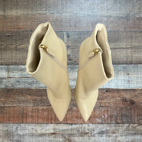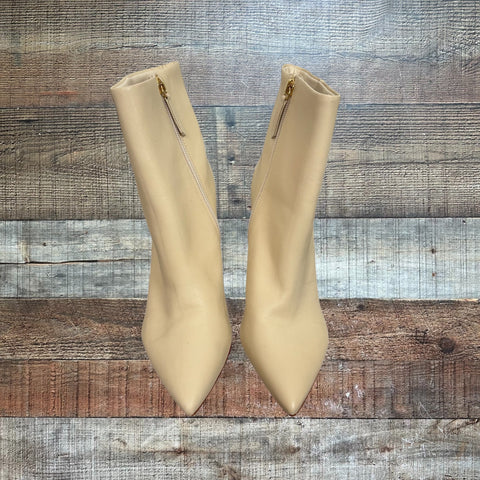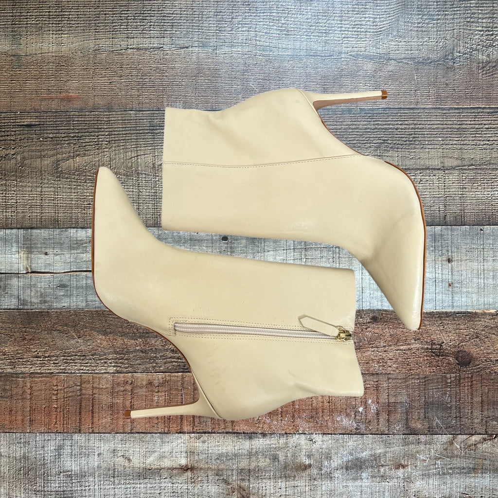 Schutz Mikki Cream Leather Side Zipper Stiletto Heel Booties- Size 8.5 (see notes)
