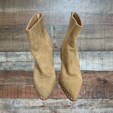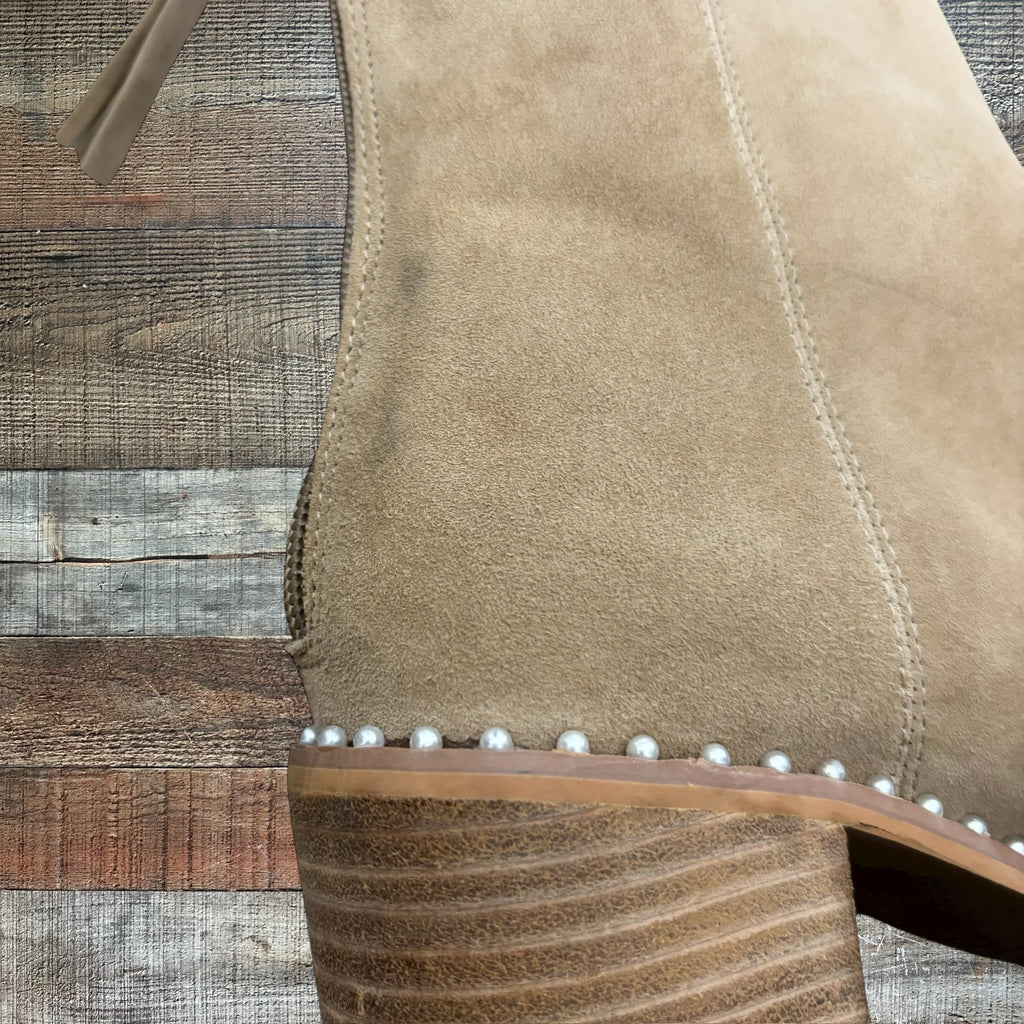 Steve Madden Tan Aquarius Leather Pearl Studded Booties- Size 8.5 (see notes)
