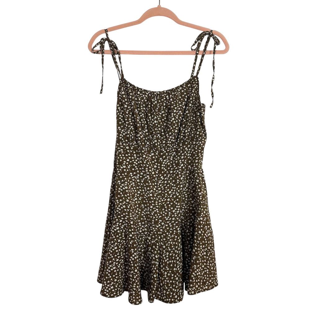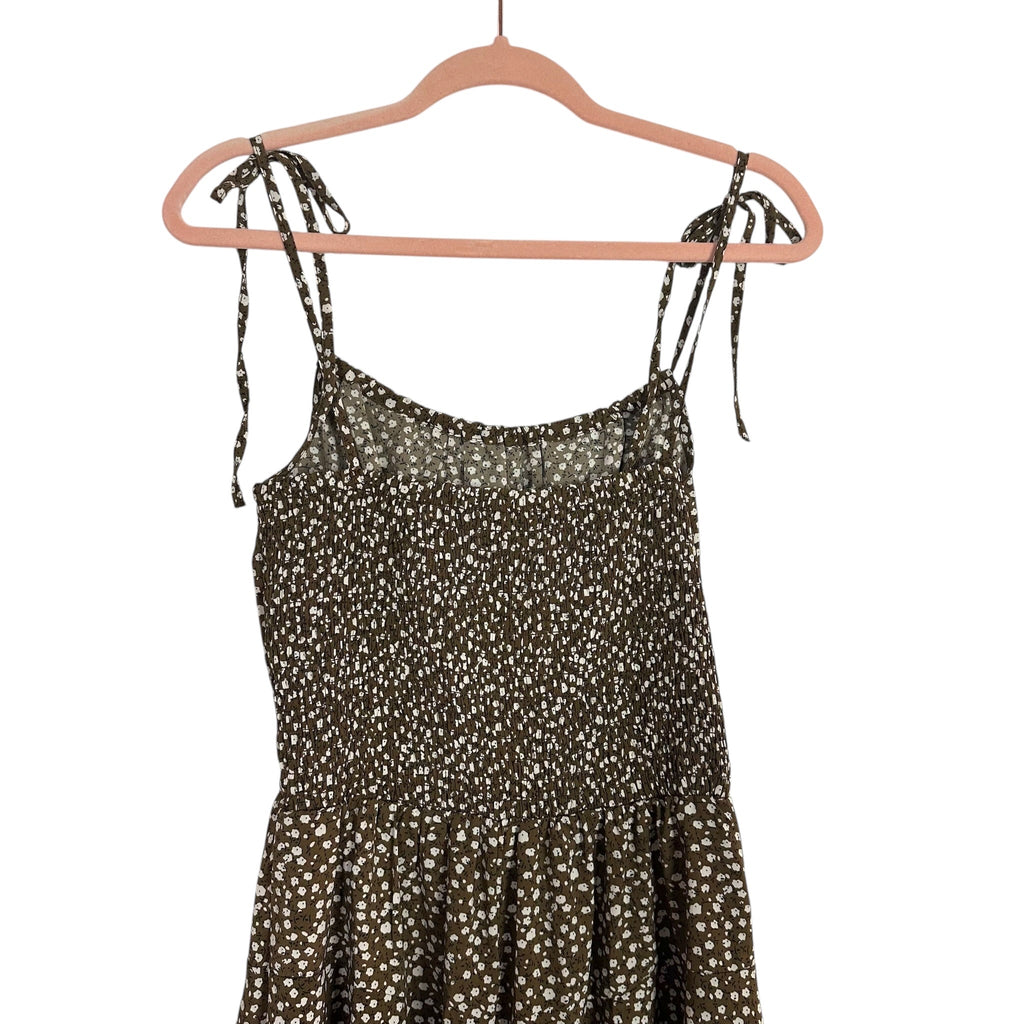 No Brand Khaki Floral Tie Strap Romper- Size M