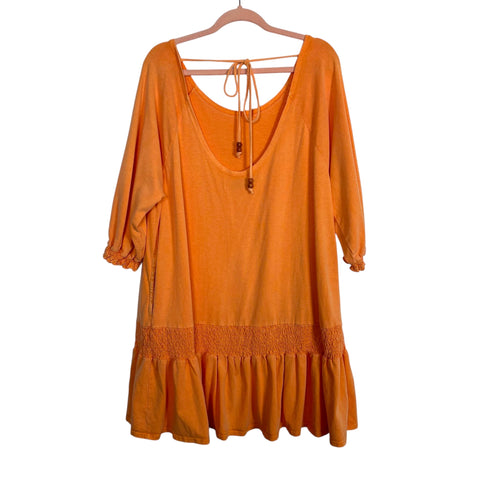 Free People Beach Orange Tie Back Smocked Dress- Size S