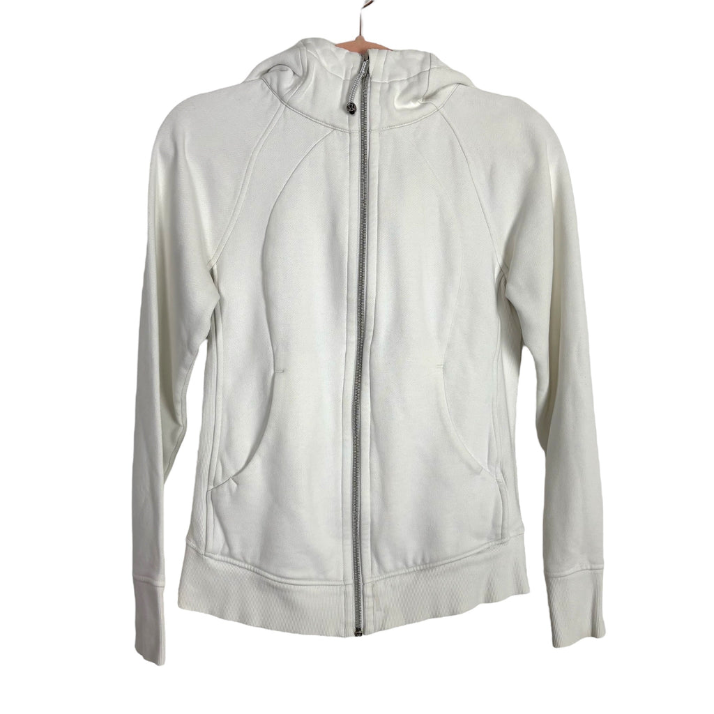 Lululemon White Zip Up Hooded Jacket - Size 6